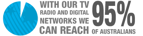 We create more hours of live content than any other broadcast media in Australia and can connect brands with 95% of Australians each week via our regional free-to-air TV networks, national radio networks, online, mobile and unique one off events. Our wide range of media offerings gives us the unique opportunity to provide inventive, interactive and cross platform campaigns.